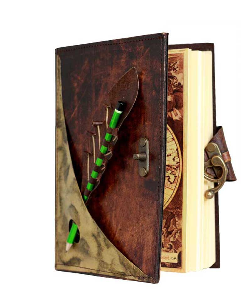 Unique handmade brown colour vintage style refillable large leather notebook with a pencil holder on the front cover. This beautifully crafted Book can also be used as a notebook and diary. When drawing you can rest assured your sketches or notes will not run across as the paper in all our journals are made of high quality Persian paper. However please do not use ink pens or water colours.